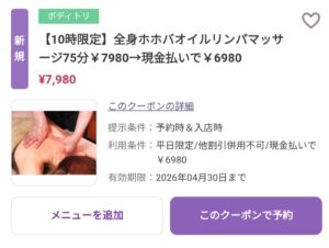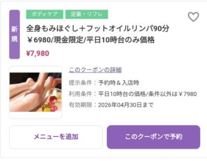 人気の《リンパマッサージ》《全身オイルリンパマッサージ》では、滞ったリンパを丁寧に流し、むくみ改善&デトックスを促進。